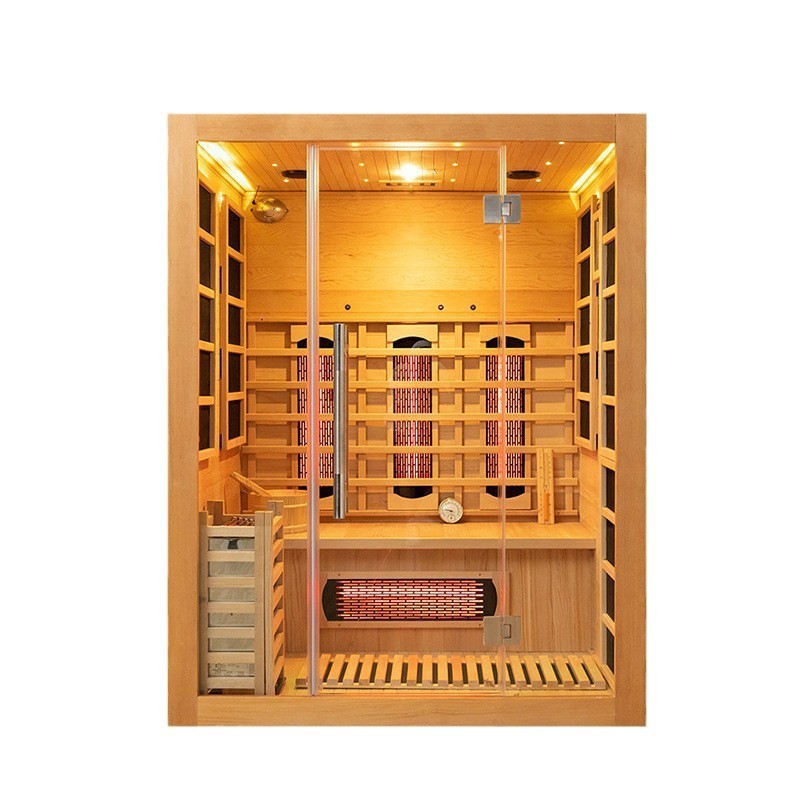 1-3 kişilik ahşap Kızılötesi ve Buharlı Sauna Odası, sağlıklı yaşam yolculuğunuzu geliştirecek gelişmiş özelliklerle doludur: Kızılötesi Isıtıcılar ve Uzak Kızılötesi Grafen Isıtma Plakaları (derin, rahatlatıcı bir ter için eşit, verimli ısıtma sağlar); Oksijen İyonlaştırıcısı (sauna içindeki havayı arındırarak taze ve canlandırıcı bir atmosfer yaratır); Okuma Işığı ve Hoparlör (sauna seansınızın tadını çıkarırken müzik okumanızı veya dinlemenizi sağlar); Kontrol Paneli (kişiselleştirilmiş bir deneyim için sıcaklık, zaman ve diğer ayarların kolayca ayarlanmasını sağlar); Sauna Sobası ve Işık Dalgası Tüpü (buhar ve kızılötesi ısı üretmek için birlikte çalışır, hem buhar hem de uzak kızılötesi sauna severlere hitap eder).