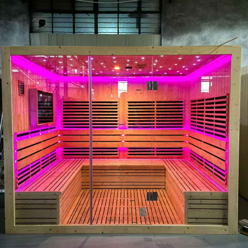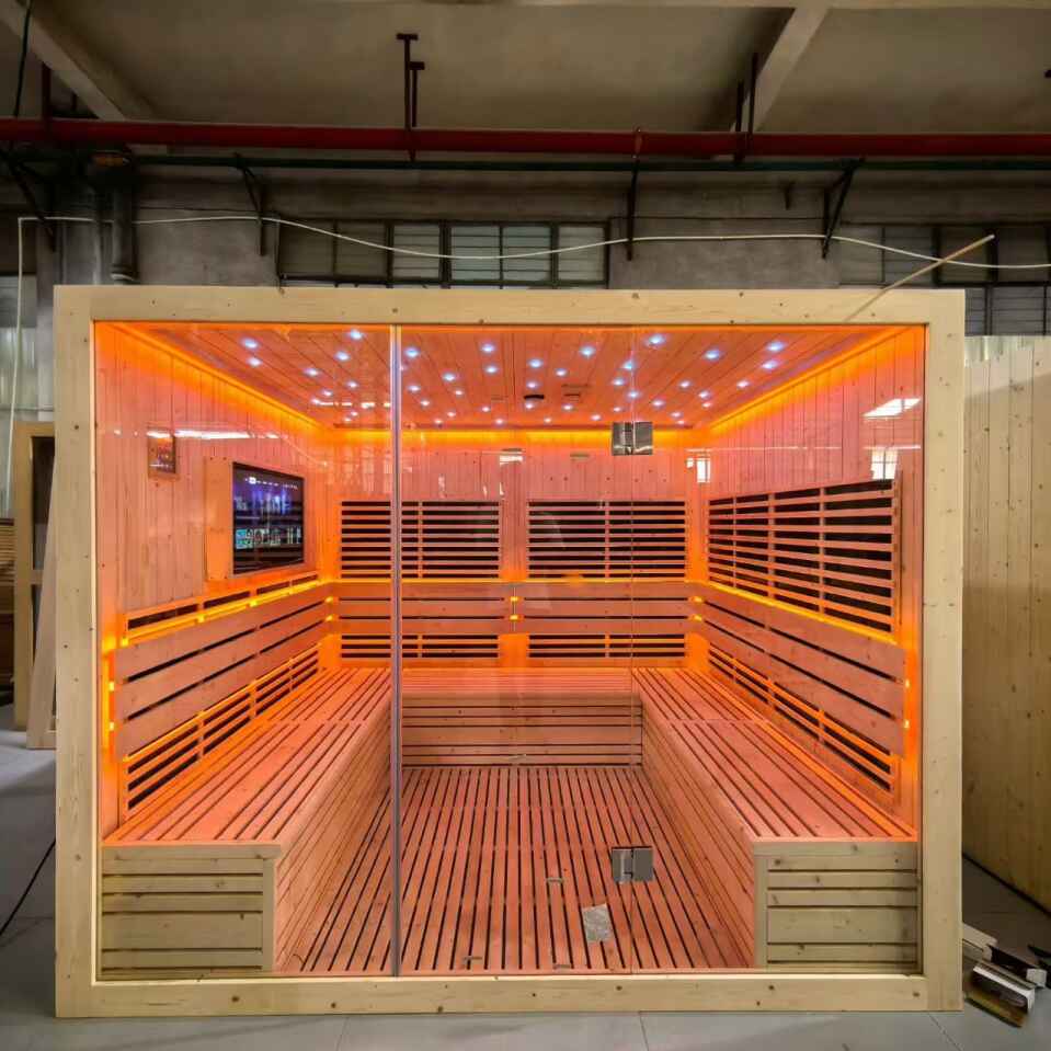 5-10 kullanıcı için tasarlanan bu sauna odası, aile toplantıları, arkadaş buluşmaları veya spa ve sağlıklı yaşam merkezleri gibi küçük ticari alanlar için idealdir. Yüksek kaliteli sauna ahşabıyla üretilen bu ürün, alanınıza doğal, sıcak bir estetik katarken dayanıklılık da sağlar.