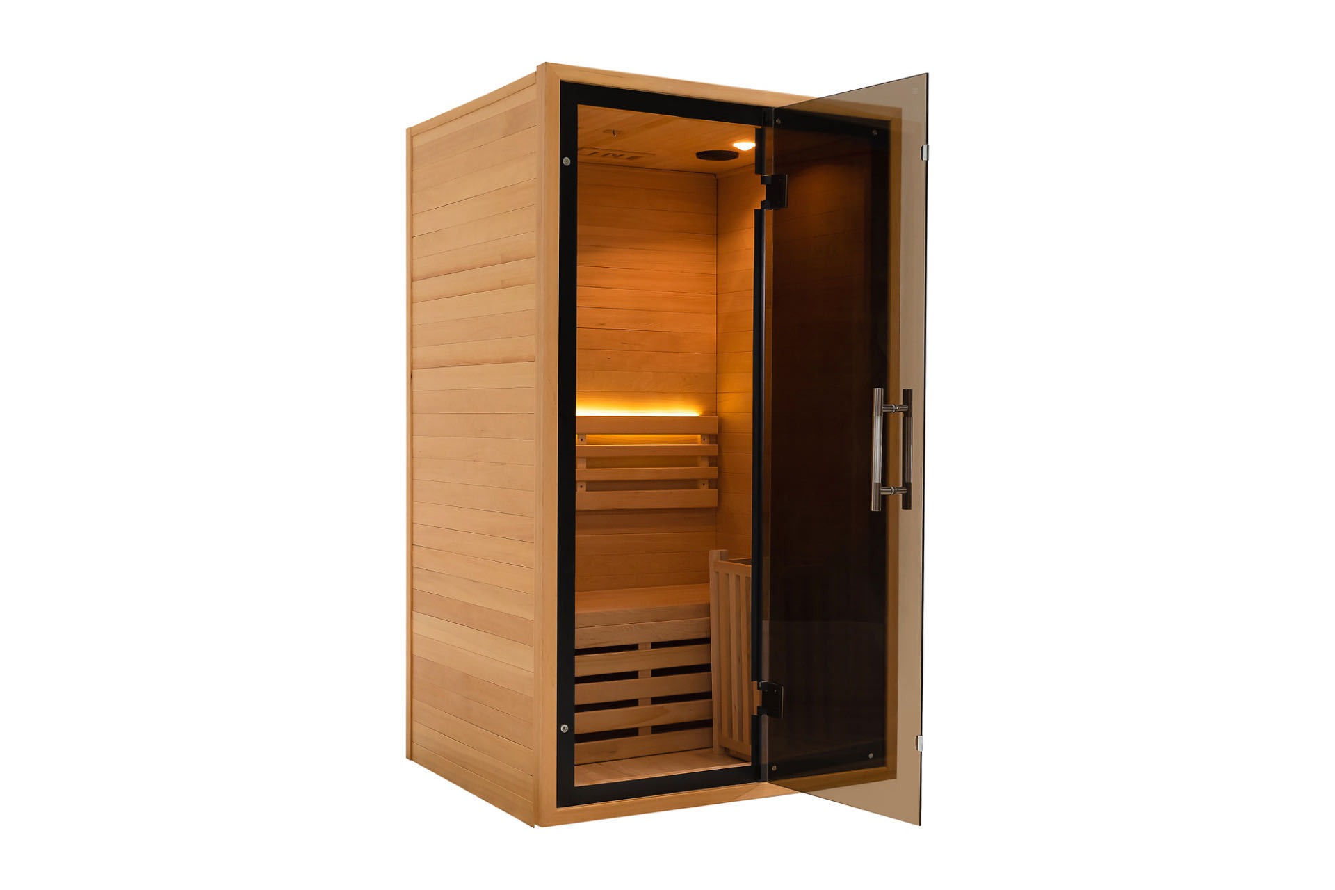 Bu saunanın temeli doğal masif ahşap, özü akıllı teknoloji ve vurgusu gri-siyah cam kapıdır. Görünüşten fonksiyona kadar her açıdan ev sağlığı için yeni bir standart oluşturuyor. Evden çıkmadan profesyonel düzeyde sauna bakımının keyfini çıkarmanızı, sağlık ve şıklığı birleştiren bir yaşam tarzına başlamanızı sağlar.
