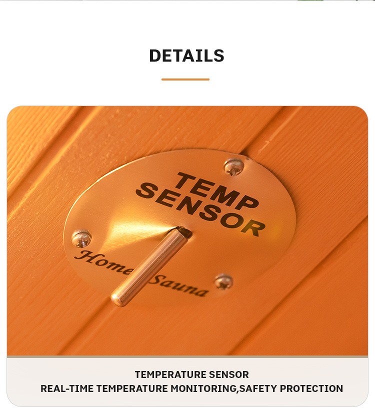 - Gerçek Zamanlı Sıcaklık Kontrol Sistemi: Dahili sıcaklık sensörü, sauna güvenliğini sağlamak için iç sıcaklığı doğru bir şekilde izler.