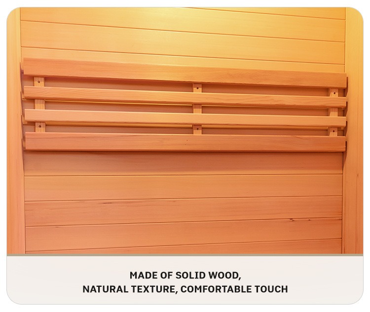 İki birinci sınıf Kanada ağacı olan Baldıran ve Kırmızı Sedir seçildi. Ahşap, net doğal dokusu ve eşit derecede zarif rengiyle sert ve dayanıklıdır. Her bir ahşap parçasının doğal özellikleri, saunaya benzersiz bir doku kazandırır ve evinizin sağlıklı yaşam alanına doğal ve üst düzey estetik genler enjekte eder. Ev için kapalı kızılötesi sauna.