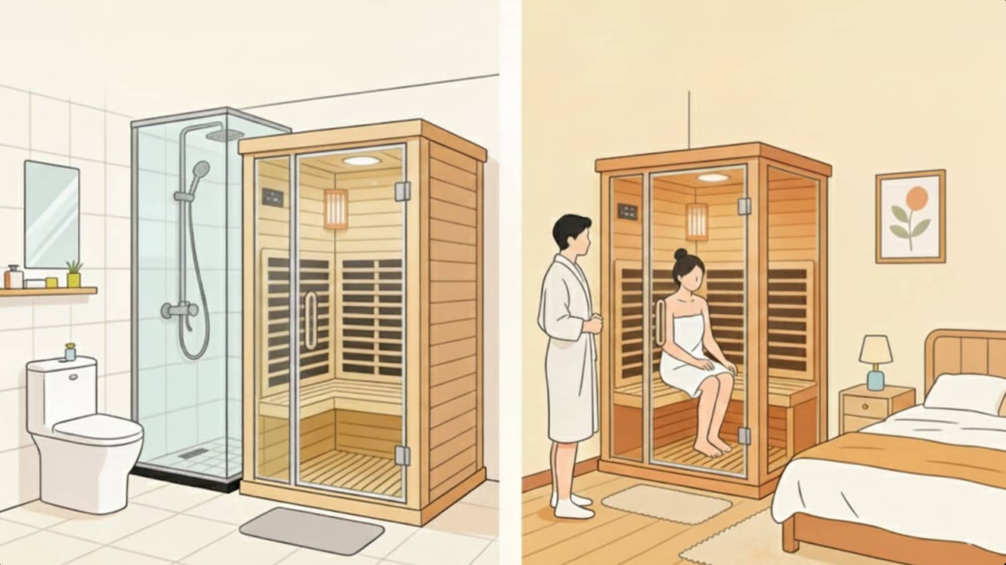 İki tür sauna birbirini dışlamaz ve mevsimlere göre kombinasyon halinde kullanılabilir; yaz aylarında uzak kızılötesi saunalar kullanın (kuru ve havasız, nemli ısının üst üste binmesini önleyen); kışın buhar saunalarını kullanın (sıcak ve nemlendirici). Koşulları olan aileler "kısmi yenileme + esnek takviye" planını benimseyebilir: banyoya bir buhar saunası modülü kurun ve sağlık ihtiyaçlarının karşılanmasını en üst düzeye çıkarmak için yatak odasına/balkona küçük bir uzak kızılötesi sauna yerleştirin.