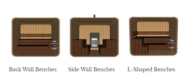 Özellikle grup kullanımına yönelik açık bir iç mekanla tasarlanmış olup üç koltuk düzeni seçeneğini destekler: arka duvara monte, yan duvara monte ve L şeklinde. Farklı grup boyutlarına ve kullanım alışkanlıklarına uyum sağlar (aile toplantılarına veya arkadaş buluşmalarına kolaylıkla uyum sağlar). Koltuklar, oturma ve yatma rahatlığı sağlarken iç hava sirkülasyonunu kolaylaştıran, sauna deneyimini yüksek sıcaklıktaki ortamlarda daha nefes alabilir ve daha az havasız hale getiren katmanlı içi boş bir yapıya sahiptir.